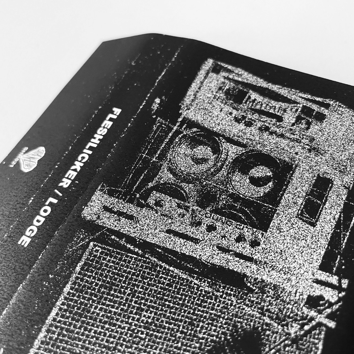 Artist copies of the FLESHLICKER / LODGE split by Silken Heart Records.